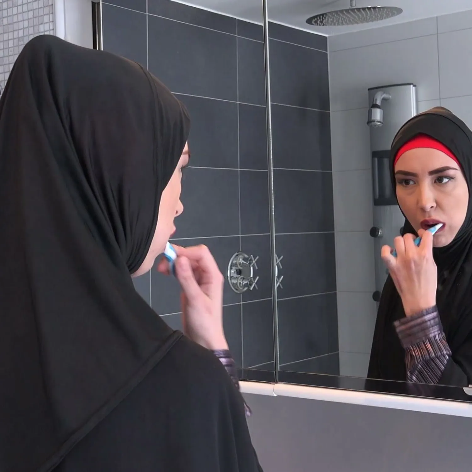 Die tschechische Muslimschlampe Freya Dee wurde im Badezimmer überrascht. Sie putzte ihre Zähne, aber ihr geiler Typ steckte ihr seinen harten Schwanz in den Mund. Er fickte ihre enge und feuchte Muschi. Sie genoss perfekten harten Sex